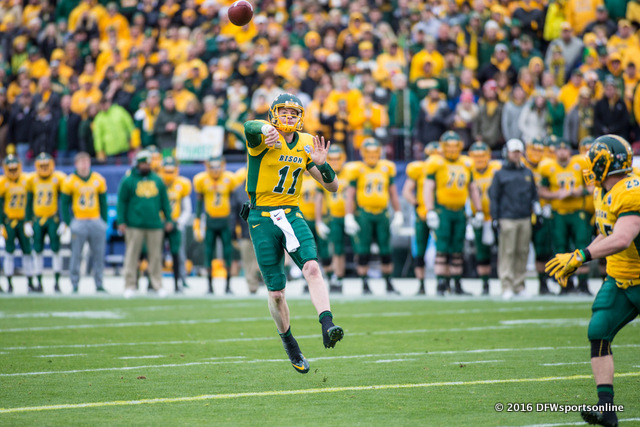 2016 FCS Football Championship DFW_7395-1 Image 11 of 28 North Dakota State quarterback Carson Wentz at the 2016 NCAA Dvision I Football Championship Game at Toyota Stadium in Frisco, TX, January 9, 2016. Photo by George Walker for DFWsportsonline Share and Enjoy !Shares Tweet
