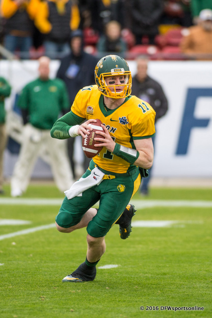 2016 FCS Football Championship DFW_7410-1 Image 16 of 28 North Dakota State quarterback Carson Wentz at the 2016 NCAA Dvision I Football Championship Game at Toyota Stadium in Frisco, TX, January 9, 2016. Photo by George Walker for DFWsportsonline Share and Enjoy !Shares Tweet