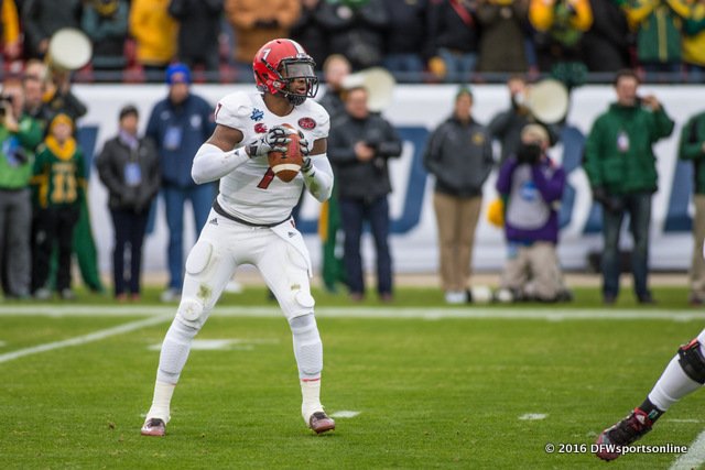2016 FCS Football Championship DFW_7421-1 Image 21 of 28 Jacksonville State quarterback Eli Jenkins at the 2016 NCAA Dvision I Football Championship Game at Toyota Stadium in Frisco, TX, January 9, 2016. Photo by George Walker for DFWsportsonline Share and Enjoy !Shares Tweet