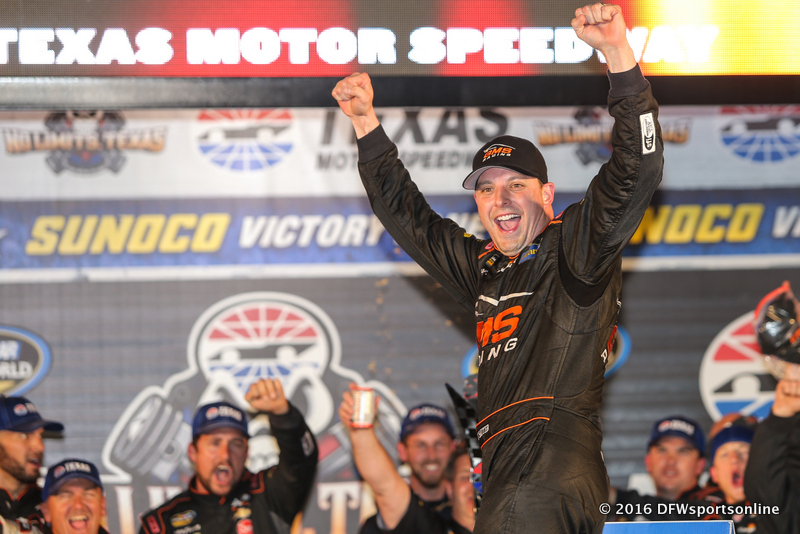 By Reid Spencer NASCAR Wire Service FORT WORTH, TX. – Grabbing the lead after a restart on Lap 171 of…