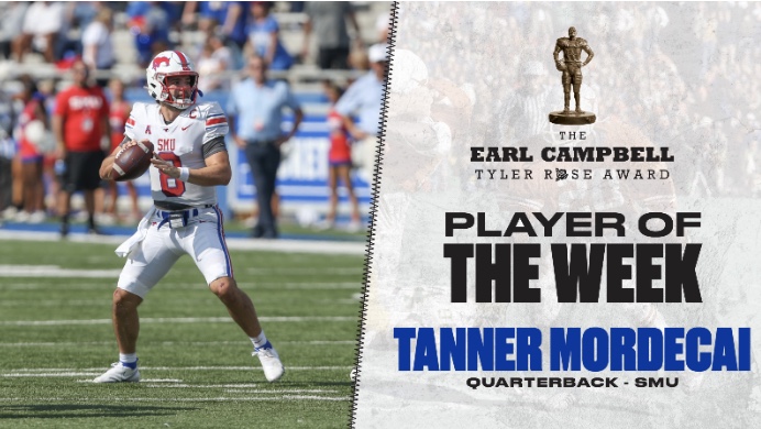 TYLER, Texas – SMU quarterback, Tanner Mordecai has been named The Earl Campbell Tyler Rose Award National Player of the…