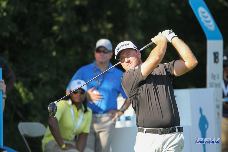 DALLAS, TX - MAY 17: Graeme McDowell (NIR) hits from the 18th tee during the first round of the AT&T Byron Nelson on May 17, 2018 at Trinity Forest Golf Club in Dallas, TX. (Photo by George Walker/Icon Sportswire)