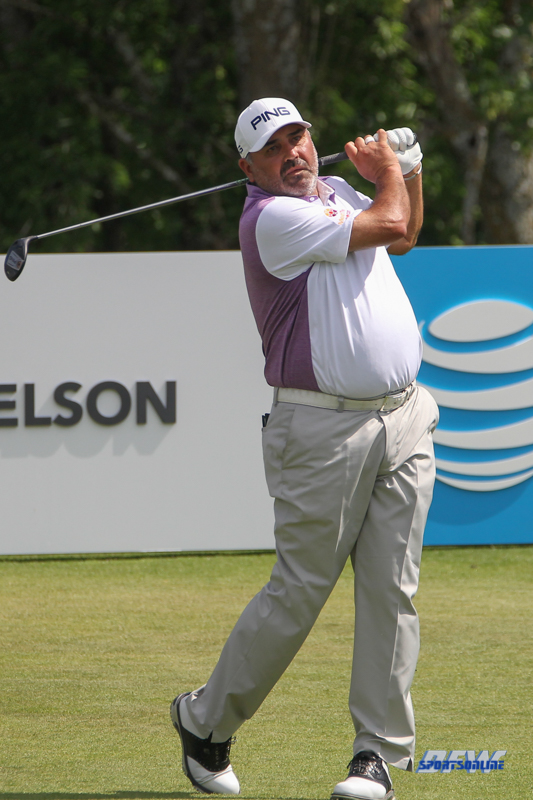 DALLAS, TX - MAY 18: Angel Cabrera (ARG) hits from the 9th tee during the second round of the AT&T Byron Nelson on May 18, 2018 at Trinity Forest Golf Club in Dallas, TX. (Photo by George Walker/Icon Sportswire)