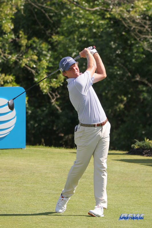 DALLAS, TX - MAY 18: Derek Fathauer (USA) hits from the 9th tee during the second round of the AT&T Byron Nelson on May 18, 2018 at Trinity Forest Golf Club in Dallas, TX. (Photo by George Walker/Icon Sportswire)