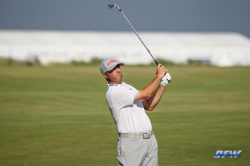 DALLAS, TX - MAY 18: Ryan Palmer (USA) hits an approach shot on the 18th hole during the second round of the AT&T Byron Nelson on May 18, 2018 at Trinity Forest Golf Club in Dallas, TX. (Photo by George Walker/Icon Sportswire)