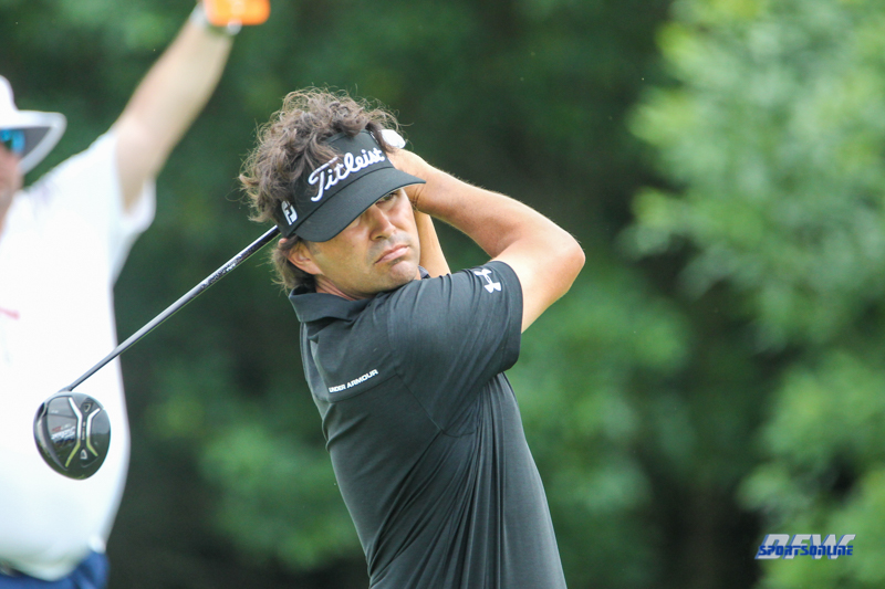 DALLAS, TX - MAY 20: Martin Flores (USA) hits from the 9th tee during the final round of the AT&T Byron Nelson on May 20, 2018 at Trinity Forest Golf Club in Dallas, TX. (Photo by George Walker/Icon Sportswire)