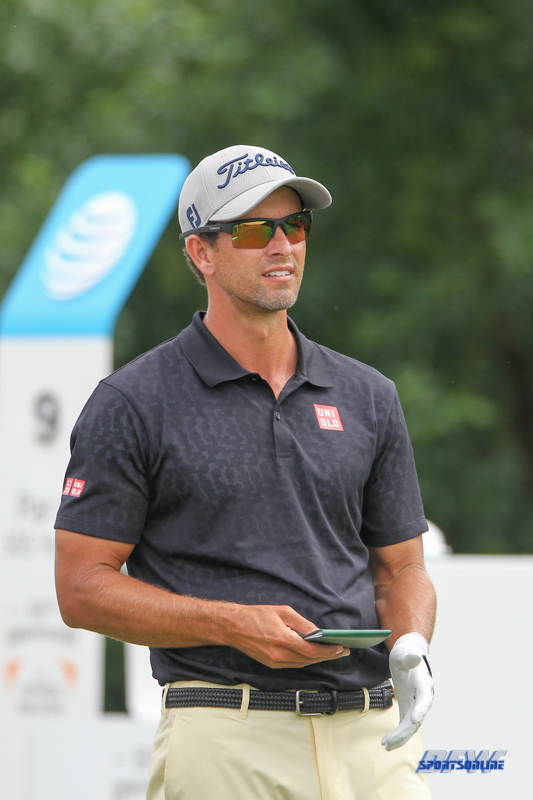 DALLAS, TX - MAY 20: Adam Scott (AUS) looks over the 9th hole during the final round of the AT&T Byron Nelson on May 20, 2018 at Trinity Forest Golf Club in Dallas, TX. (Photo by George Walker/Icon Sportswire)