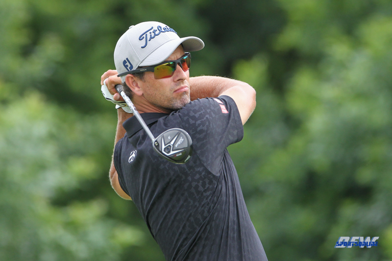 DALLAS, TX - MAY 20: Adam Scott (AUS) hits from the 9th tee during the final round of the AT&T Byron Nelson on May 20, 2018 at Trinity Forest Golf Club in Dallas, TX. (Photo by George Walker/Icon Sportswire)