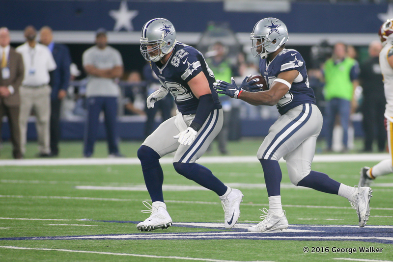 ARLINGTON, TX - NOVEMBER 24: Dallas Cowboys Linebacker James Morris (46) runs behind the block of Dallas Cowboys Tight End Jason Witten (82) during the NFL game between the Washington Redskins and the Dallas Cowboys on November 24, 2016, at AT&T Stadium in Arlington, TX. (Photo by George Walker/Icon Sportswire)