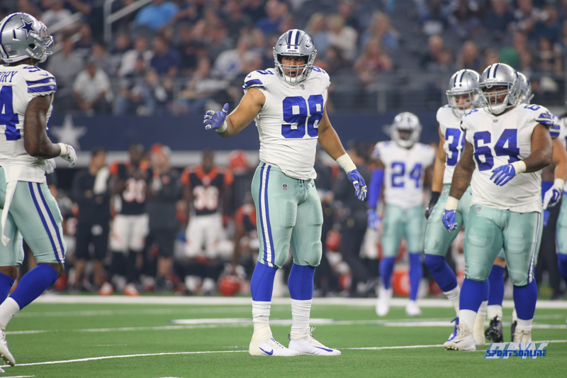 ARLINGTON, TX - AUGUST 18: Dallas Cowboys defensive end Tyrone Crawford (98) signals during the preseason game between the Dallas Cowboys and Cincinnati Bengals on August 18, 2018 at AT&T Stadium in Arlington, TX. (Photo by George Walker/Icon Sportswire)