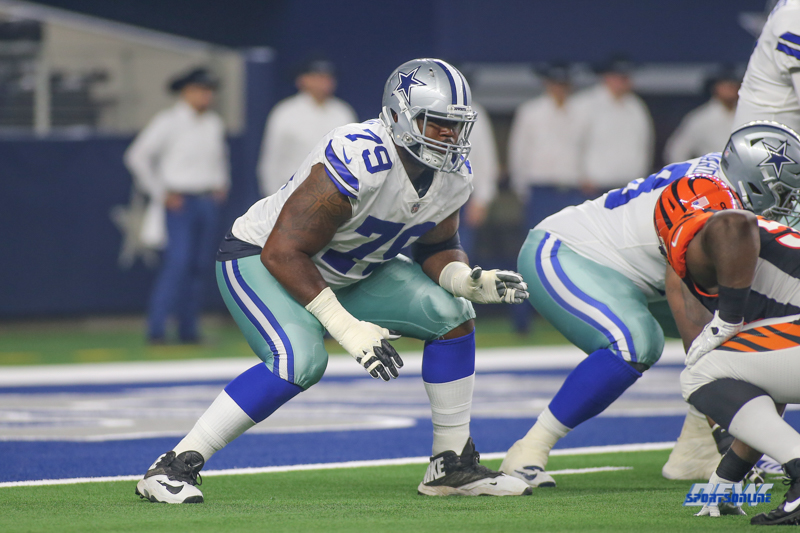 ARLINGTON, TX - AUGUST 18: Dallas Cowboys offensive tackle Chaz Green (79) waits for the snap during the preseason game between the Dallas Cowboys and Cincinnati Bengals on August 18, 2018 at AT&T Stadium in Arlington, TX. (Photo by George Walker/Icon Sportswire)