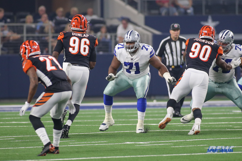 ARLINGTON, TX - AUGUST 18: Dallas Cowboys offensive tackle La'el Collins (71) pass blocks during the preseason game between the Dallas Cowboys and Cincinnati Bengals on August 18, 2018 at AT&T Stadium in Arlington, TX. (Photo by George Walker/Icon Sportswire)