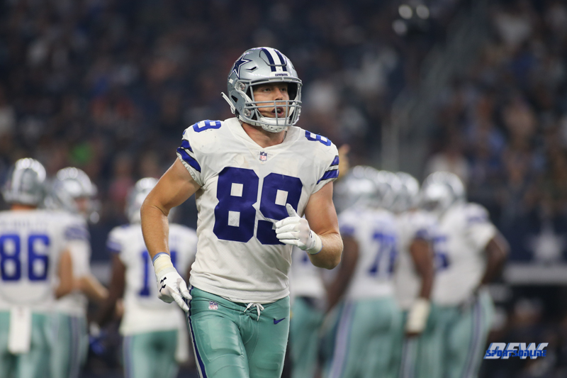 ARLINGTON, TX - AUGUST 18: Dallas Cowboys tight end Blake Jarwin (89) runs off the field during the preseason game between the Dallas Cowboys and Cincinnati Bengals on August 18, 2018 at AT&T Stadium in Arlington, TX. (Photo by George Walker/Icon Sportswire)