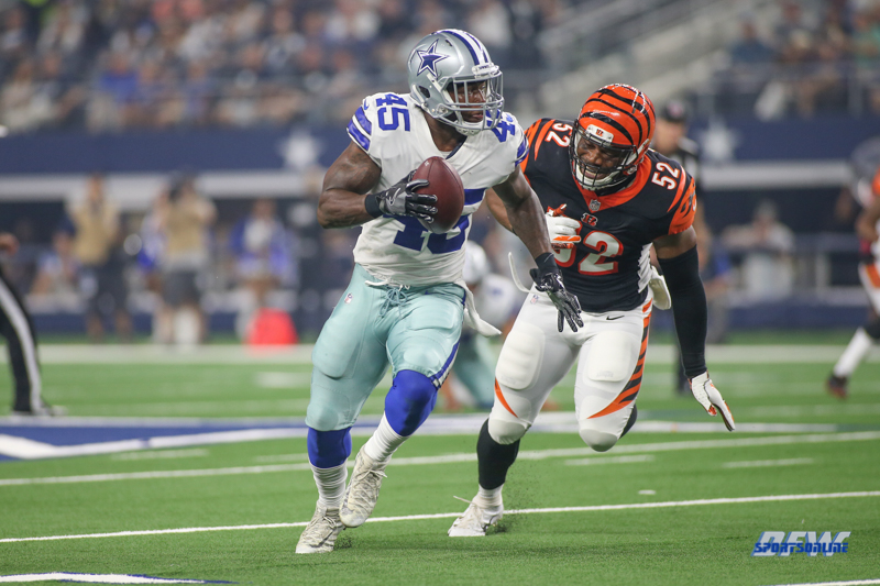 ARLINGTON, TX - AUGUST 18: Dallas Cowboys running back Rod Smith (45) runs upfield during the preseason game between the Dallas Cowboys and Cincinnati Bengals on August 18, 2018 at AT&T Stadium in Arlington, TX. (Photo by George Walker/Icon Sportswire)