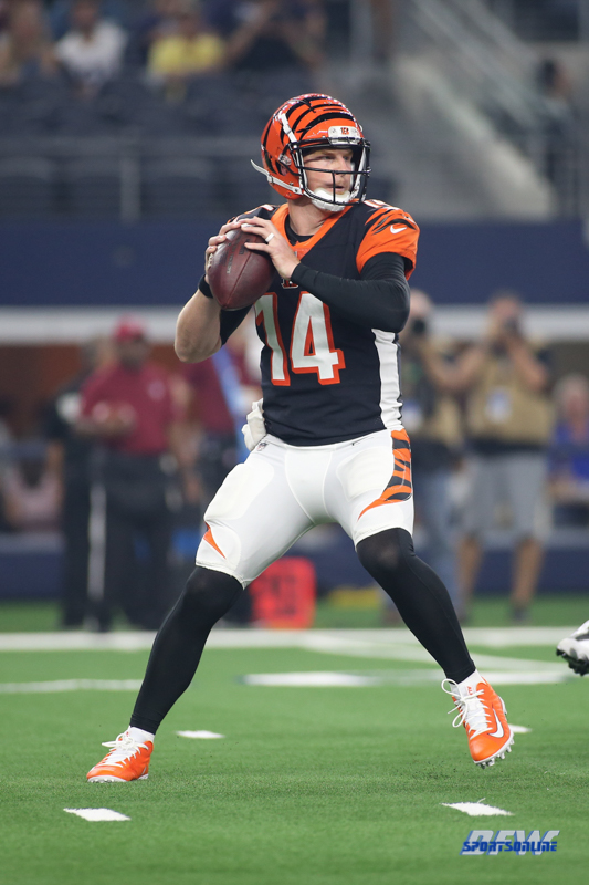 ARLINGTON, TX - AUGUST 18: Cincinnati Bengals quarterback Andy Dalton (14) passes during the preseason game between the Dallas Cowboys and Cincinnati Bengals on August 18, 2018 at AT&T Stadium in Arlington, TX. (Photo by George Walker/Icon Sportswire)
