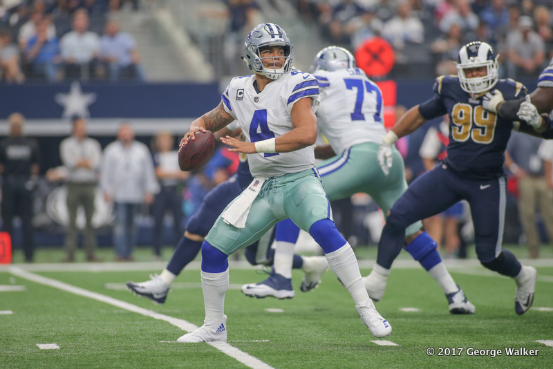 Cowboys quarterback Dak Prescott threw a 28-yard touchdown pass to tight end James Hanna to cut the Rams’ lead to two points, but Dallas couldn’t tie the game as Prescott’s two-point pass to Terrance Williams fell incomplete.