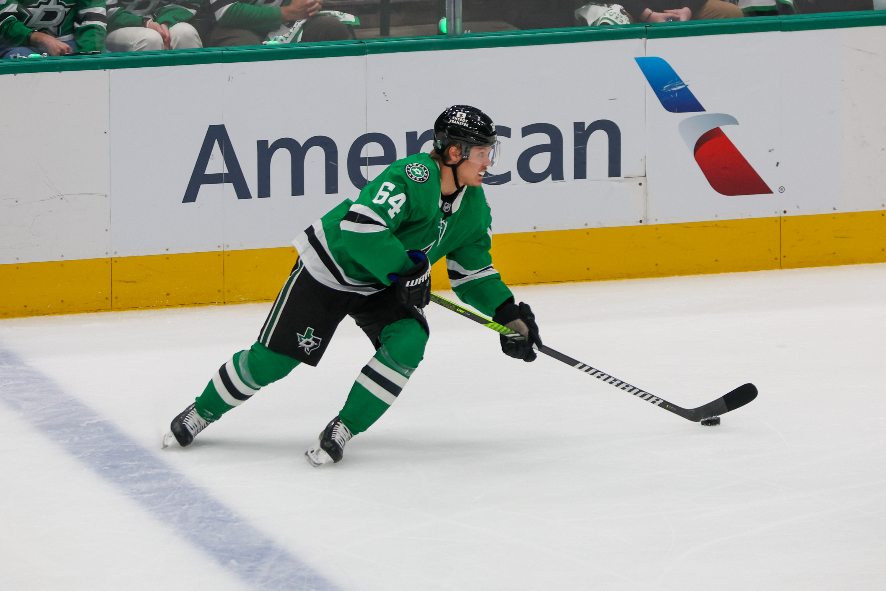 Dallas doubled its lead late in the first period when Thomas Harley’s shot rebounded off Blackwood, popped into the air, and landed on the goaltender’s back before rolling across the goal line at 19:15.