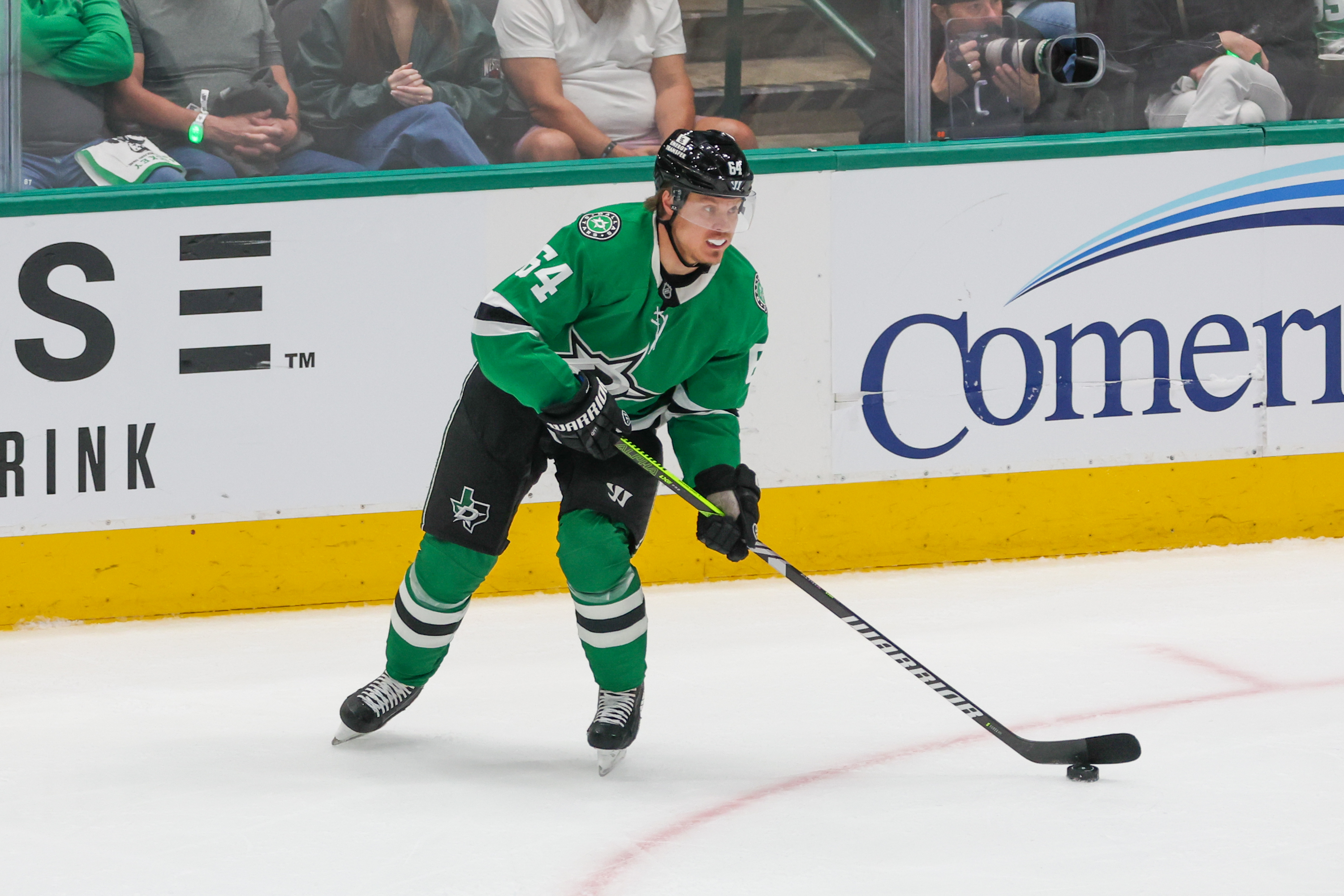 Dallas doubled its lead late in the first period when Thomas Harley’s shot rebounded off Blackwood, popped into the air, and landed on the goaltender’s back before rolling across the goal line at 19:15.