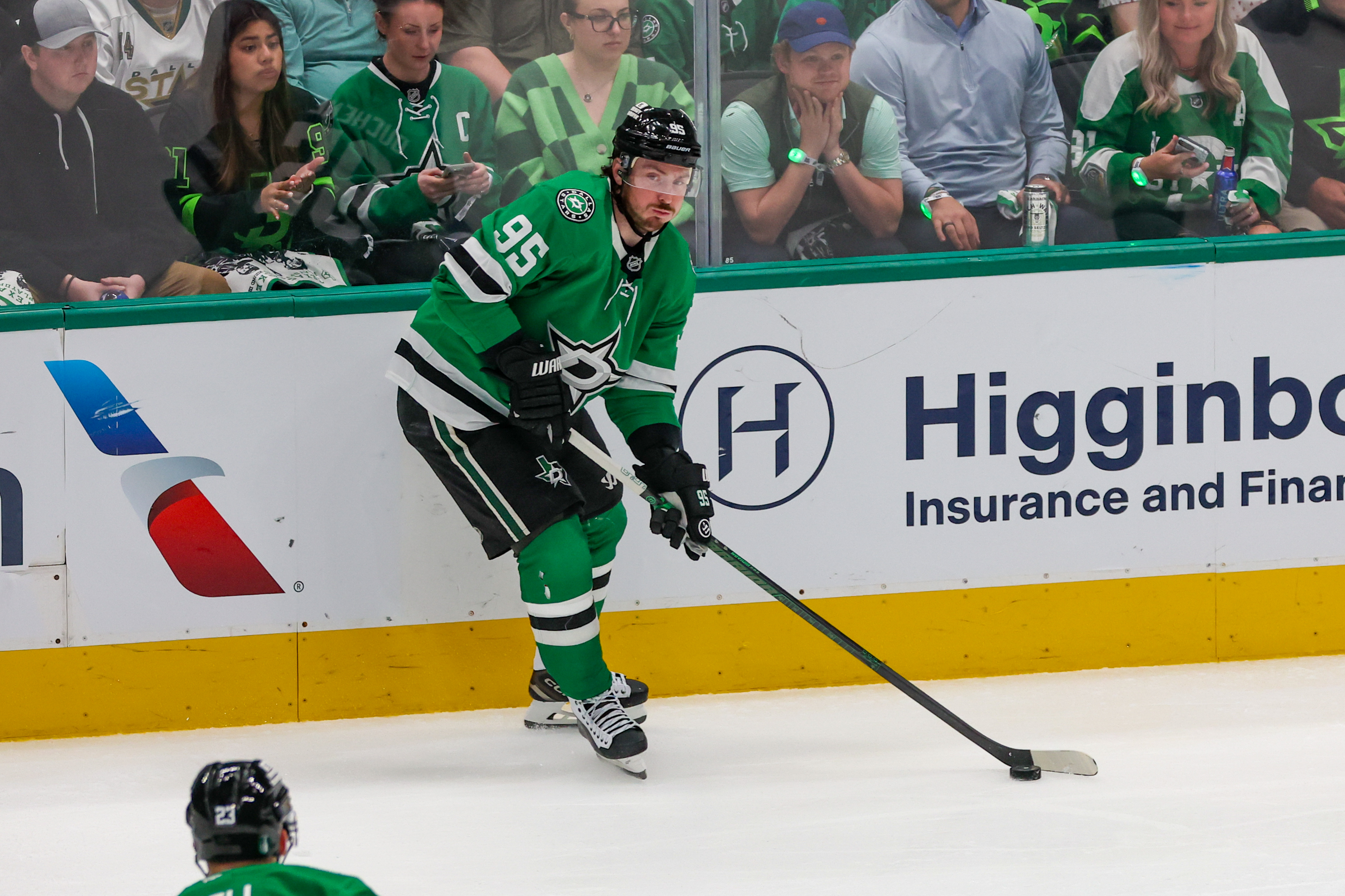 Dallas doubled its lead late in the first period when Thomas Harley’s shot rebounded off Blackwood, popped into the air, and landed on the goaltender’s back before rolling across the goal line at 19:15.