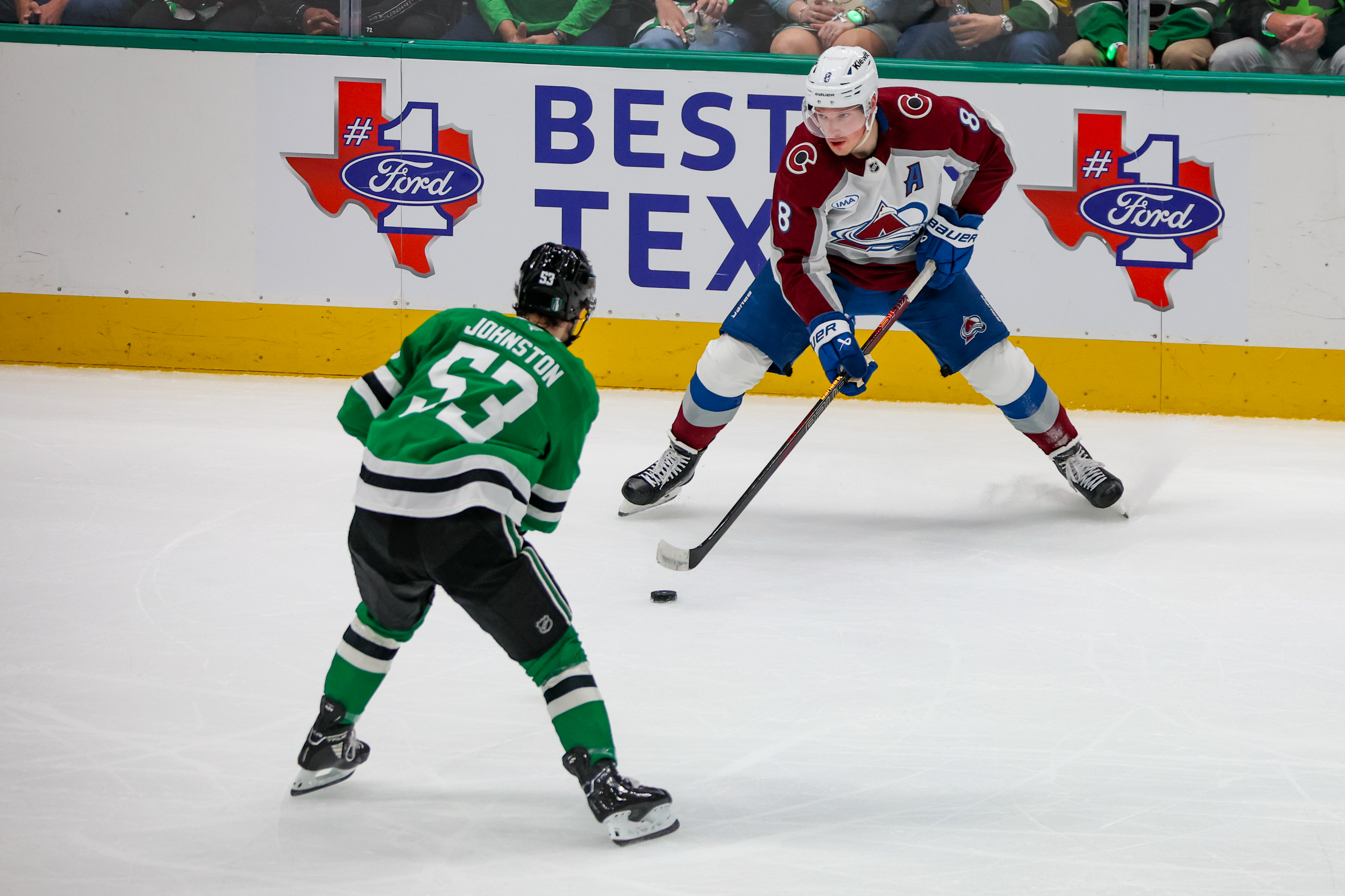 Colorado responded with a pair of quick goals midway through the second. Artturi Lehkonen redirected a Martin Necas one-timer from the top of the crease at 12:11, and Nathan MacKinnon cut the deficit to 3-2 with a high-slot shot at 14:38. However, Dallas quickly regained control.