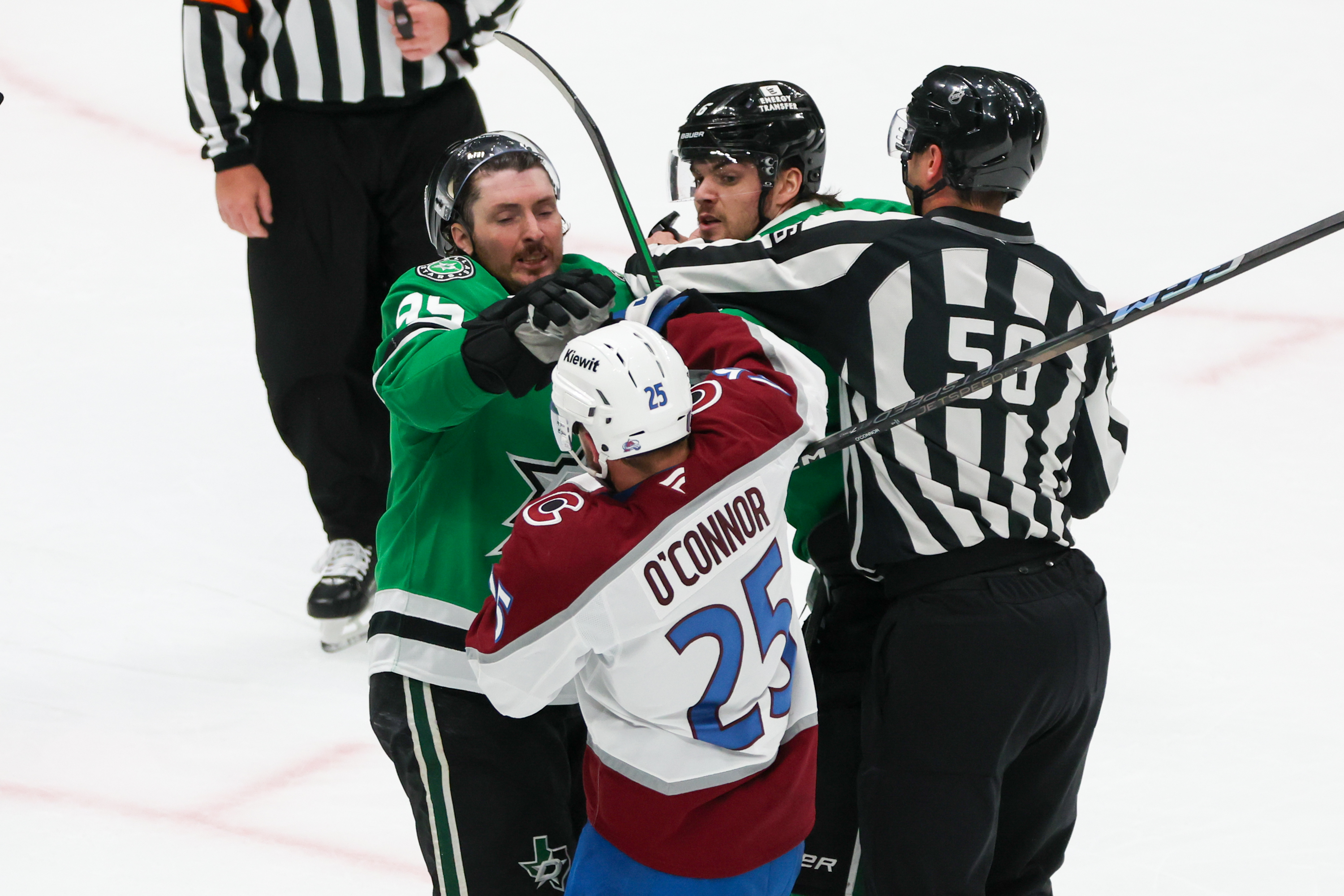 Colorado responded with a pair of quick goals midway through the second. Artturi Lehkonen redirected a Martin Necas one-timer from the top of the crease at 12:11, and Nathan MacKinnon cut the deficit to 3-2 with a high-slot shot at 14:38. However, Dallas quickly regained control.