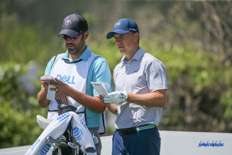 MAR 21, 2018: Jordan Spieth (USA) talks with his caddie during the First Round of the WGC-Dell Technologies Match Play on March 21, 2018 at Austin Country Club in Austin, TX. (Photo by George Walker/DFWsportsonline)