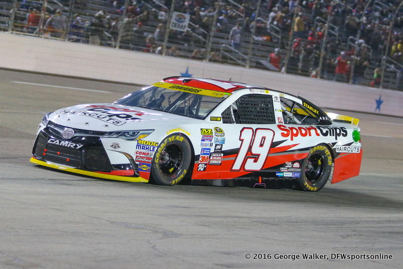 Edwards beat Martin Truex Jr. out of the pits, and that proved the difference, as the No. 19 Joe Gibbs racing Toyota held the top spot the rest of the way until a rain shower halted the proceedings after 293 of a planned 334 laps.