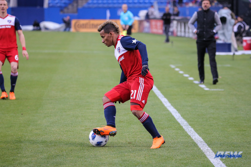 APR 7, 2018: FC Dallas midfielder Michael Barrios (21) during the MLS game between FC Dallas and Colorado Rapid on April 7, 2018, at Toyota Stadium in Frisco, TX. (Photo by George Walker/DFWsportsonline)