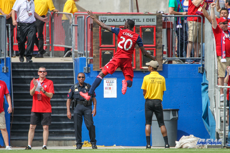MAR 24, 2018: FC Dallas forward Roland Lamah (20) celebrates jumps in celebration of a goal during the MLS game between FC Dallas and Portland Timber on March 24, 2018, at Toyota Stadium in Frisco, TX. (Photo by George Walker/DFWsportsonline)