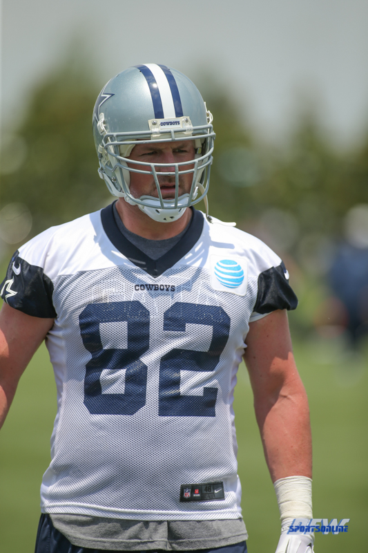 FRISCO, TX - JUNE 07: Dallas Cowboys tight end Jason Witten (82) walks to the huddle during the Dallas Cowboys OTA practice on June 7, 2017 at The Star in Frisco, Texas. (Photo by George Walker/Icon Sportswire)