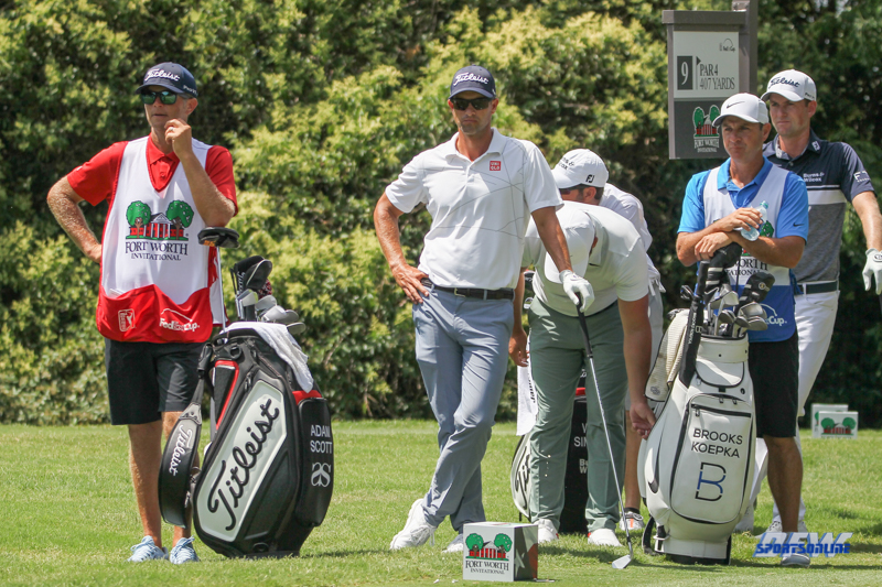 FORT WORTH, TX - MAY 24: Adam Scott (USA) looks over the 9th hole during the first round of the Fort Worth Invitational on May 24, 2018 at Colonial Country Club in Fort Worth, TX. (Photo by George Walker/Icon Sportswire)