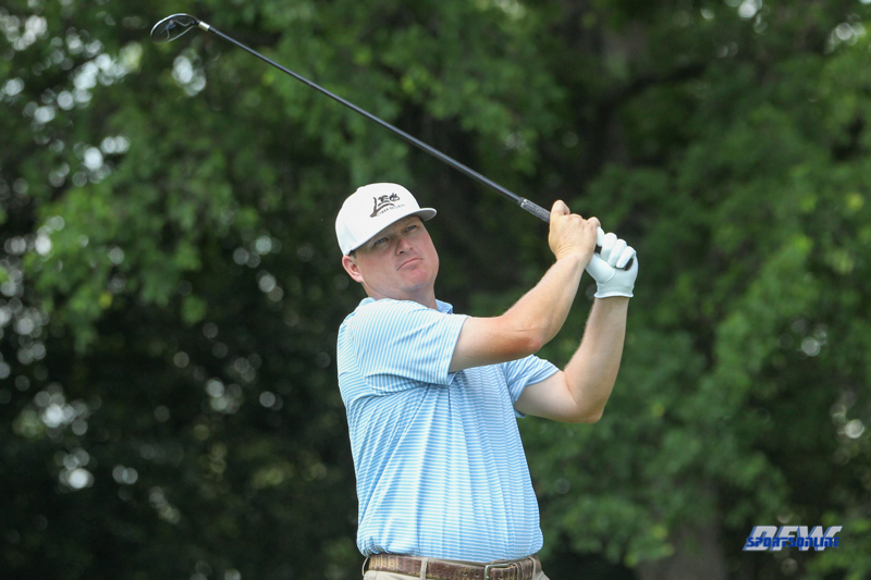 FORT WORTH, TX - MAY 24: Chad Campbell (USA) hits from the 9th tee during the first round of the Fort Worth Invitational on May 24, 2018 at Colonial Country Club in Fort Worth, TX. (Photo by George Walker/Icon Sportswire)