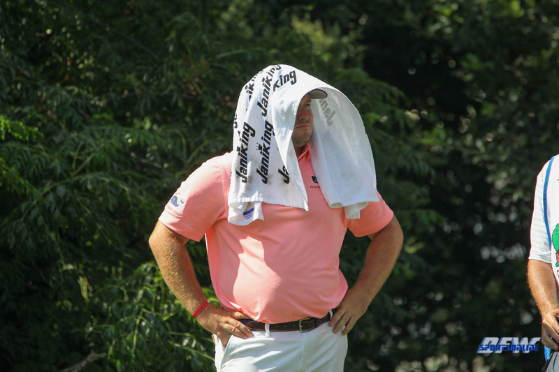 FORT WORTH, TX - MAY 24: Tom Lovelady (USA) uses a towel to cool off on the 12th tee during the first round of the Fort Worth Invitational on May 24, 2018 at Colonial Country Club in Fort Worth, TX. (Photo by George Walker/Icon Sportswire)