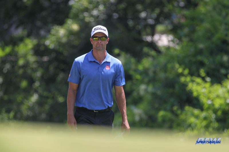 FORT WORTH, TX - MAY 25: Adam Scott (AUS) walks to the 8th green during the second round of the Fort Worth Invitational on May 25, 2018 at Colonial Country Club in Fort Worth, TX. (Photo by George Walker/Icon Sportswire)
