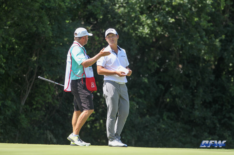 FORT WORTH, TX - MAY 26: Danny Lee (NZL) listens to his caddie on the 11th green during the third round of the Fort Worth Invitational on May 26, 2018 at Colonial Country Club in Fort Worth, TX. (Photo by George Walker/Icon Sportswire)