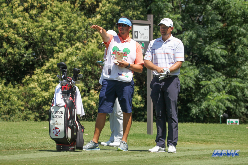 FORT WORTH, TX - MAY 26: Brandon Harkins and his caddie look over the 9th hole during the third round of the Fort Worth Invitational on May 26, 2018 at Colonial Country Club in Fort Worth, TX. (Photo by George Walker/Icon Sportswire)