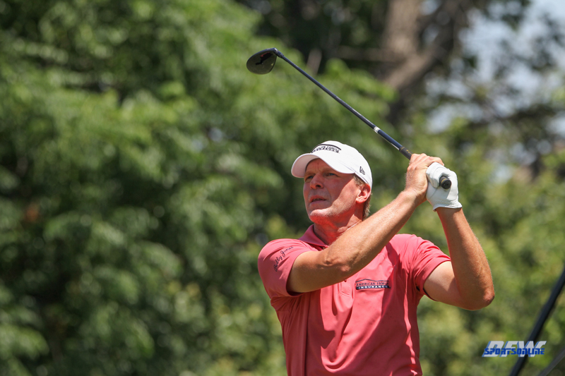 FORT WORTH, TX - MAY 26: Steve Stricker (USA) watches his shot from the 9th tee during the third round of the Fort Worth Invitational on May 26, 2018 at Colonial Country Club in Fort Worth, TX. (Photo by George Walker/Icon Sportswire)