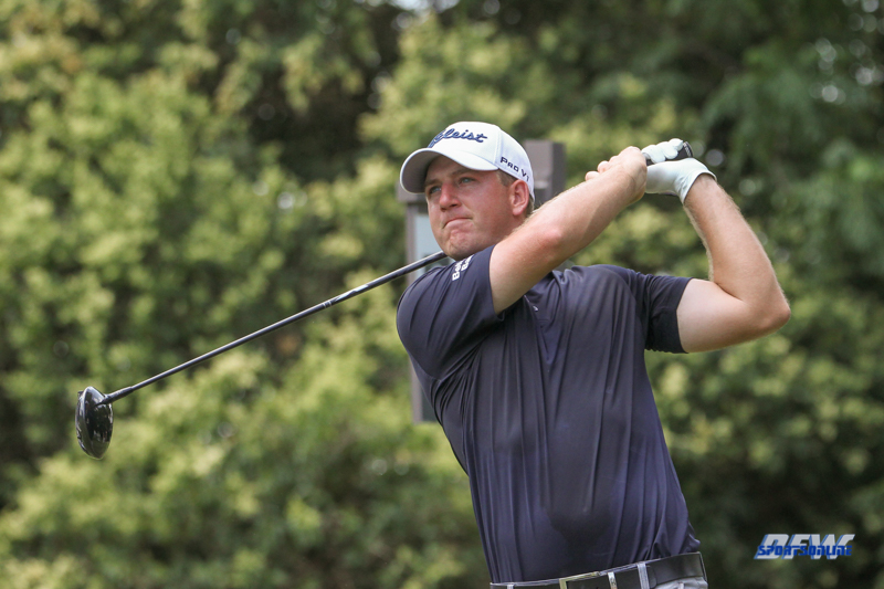 FORT WORTH, TX - MAY 26: Tom Hoge (USA) hits from the 9th tee during the third round of the Fort Worth Invitational on May 26, 2018 at Colonial Country Club in Fort Worth, TX. (Photo by George Walker/Icon Sportswire)