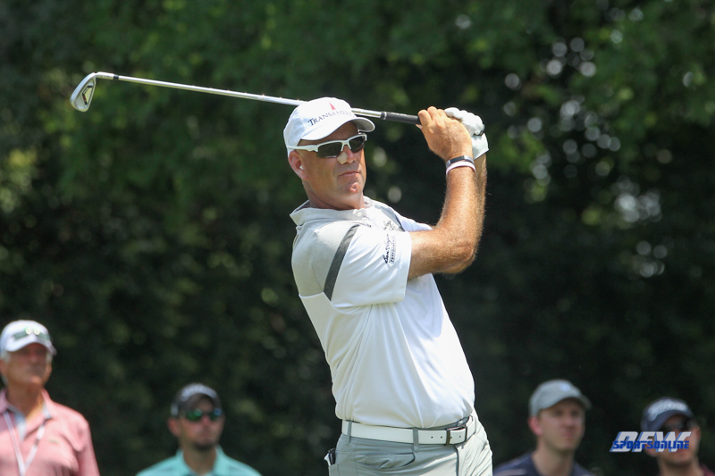 FORT WORTH, TX - MAY 27: Stewart Cink (USA) hits from the 9th tee during the final round of the Fort Worth Invitational on May 27, 2018 at Colonial Country Club in Fort Worth, TX. (Photo by George Walker/Icon Sportswire)