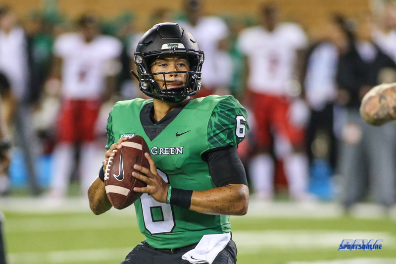 DENTON, TX - SEPTEMBER 08: North Texas Mean Green quarterback Mason Fine (6) passes during the game between North Texas and Incarnate Word on September 8, 2018 at Apogee Stadium in Denton, TX. (Photo by George Walker/DFWsportsonline)