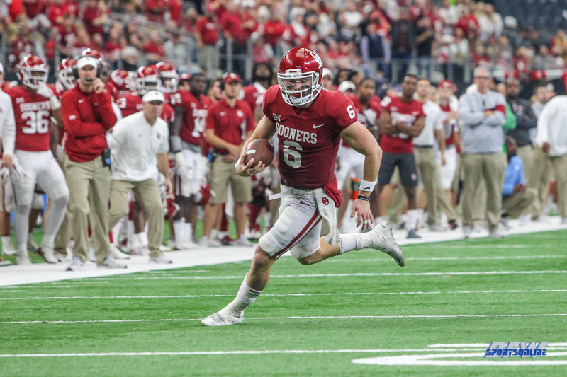 ARLINGTON, TX - DECEMBER 02: Oklahoma Sooners quarterback Baker Mayfield (6) runs around the outside during the Big 12 Championship game on December 2, 2017 at AT&T Stadium in Arlington, TX. (Photo by George Walker/Icon Sportswire)
