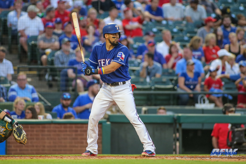 ARLINGTON, TX - APRIL 24: Texas Rangers catcher Robinson Chirinos (61) stands at the plate during the game between the Texas Rangers and the Oakland Athletics on April 24, 2018 at Globe Life Park in Arlington, TX. (Photo by George Walker/Icon Sportswire)