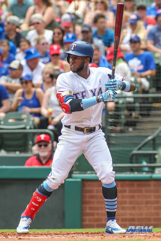 ARLINGTON, TX - JUNE 17: Texas Rangers Infielder Jurickson Profar (19) stands at the plate during the game between the Colorado Rockies and the Texas Rangers on June 17, 2018 at Globe Life Park in Arlington, TX. (Photo by George Walker/Icon Sportswire)
