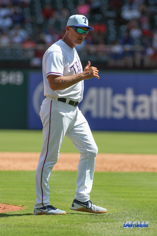 ARLINGTON, TX - JUNE 17: Texas Rangers manager Jeff Banister makes a pitching change during the game between the Colorado Rockies and the Texas Rangers on June 17, 2018 at Globe Life Park in Arlington, TX. (Photo by George Walker/Icon Sportswire)