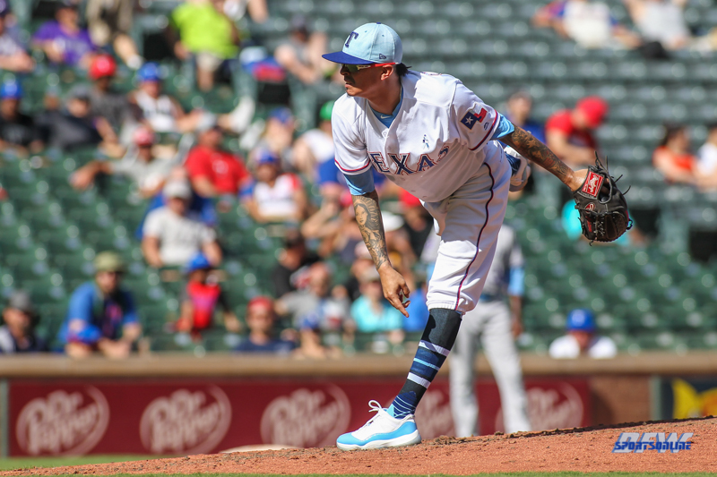 ARLINGTON, TX - JUNE 17: Texas Rangers pitcher Jesse Chavez (53) throws to the plate during the game between the Colorado Rockies and the Texas Rangers on June 17, 2018 at Globe Life Park in Arlington, TX. (Photo by George Walker/Icon Sportswire)