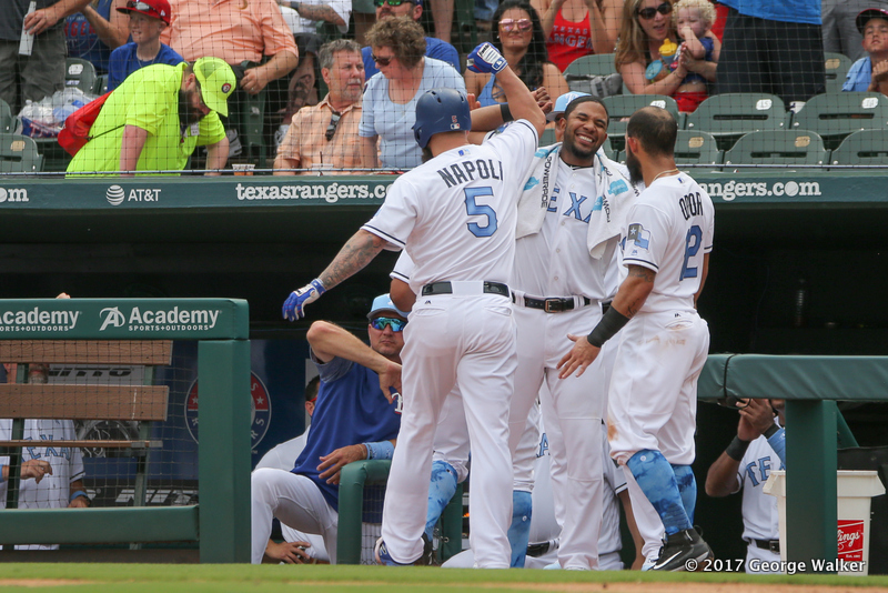 Designated hitter Mike Napoli had two of the homers, both two-run shots. His first completed the five-run first inning. His second capped the sixth inning, which also included a solo homer from Rougned Odor and a two-run homer from Shin-Soo Choo.