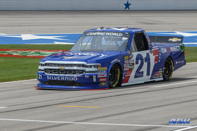 “I complained about it all night long, just no balance, no grip,” said Sauter, driver of the No. 21 ISM Connect Chevrolet Silverado fielded by GMS Racing. “We made great adjustments and played the track position game. That’s where the speed is at, getting in clean air. This has been a dream start and proud to get this win. I’m speechless…don’t know what to say anymore. Five wins at Texas, it’s awesome.”