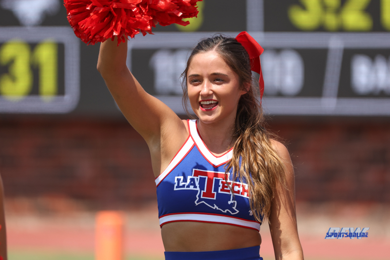 DALLAS, TX - SEPTEMBER 02: Louisiana Tech Bulldogs cheerleader performs during the game between SMU and Louisiana Tech on September 2, 2023 at Gerald J Ford Stadium in Dallas, TX. (Photo by George Walker/DFWsportsonline)