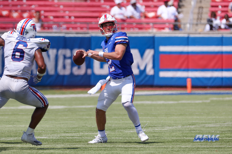 The Mustangs had 311 yards offense by halftime while holding the Bulldogs (1-1) to 78. By game’s end, SMU outgained the Bulldogs 457-269, held Louisiana Tech to 28 rushing yards and sacked Hank Bachmeier six times, two of them by Alex Kilgore.