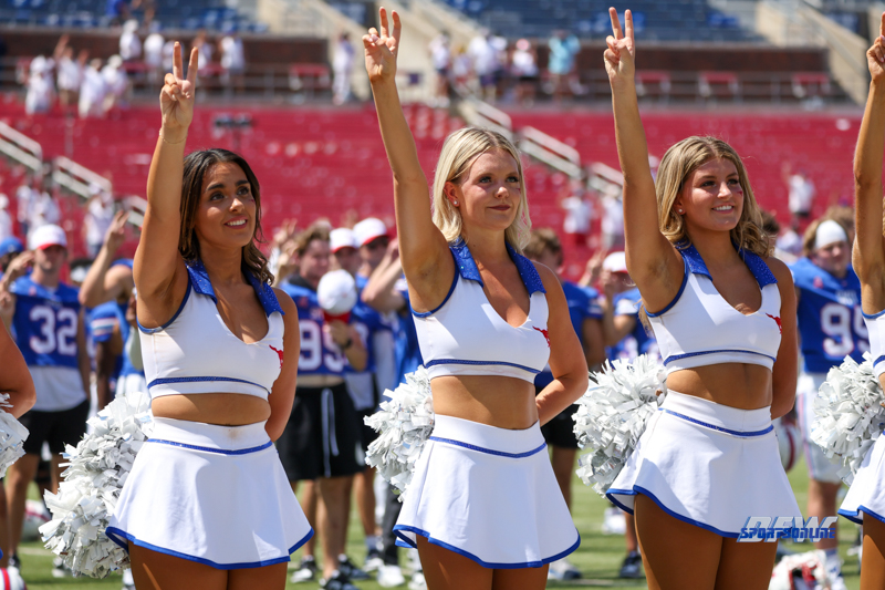 DALLAS, TX - SEPTEMBER 02: Southern Methodist Mustangs pom squad during the game between SMU and Louisiana Tech on September 2, 2023 at Gerald J Ford Stadium in Dallas, TX. (Photo by George Walker/DFWsportsonline)